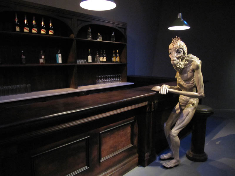 ABOVE: A weird figment of a debauched imagination (left) foolishly attempts to drink with an ordinary member of the public (right).