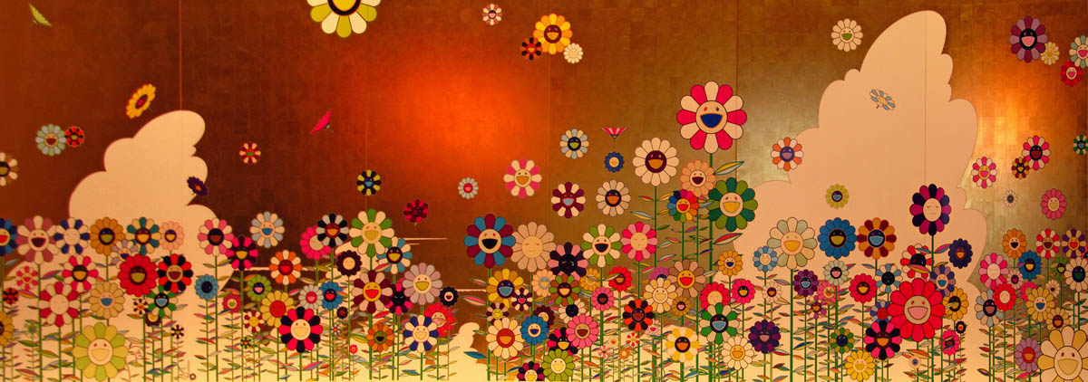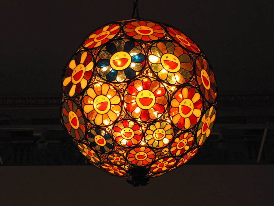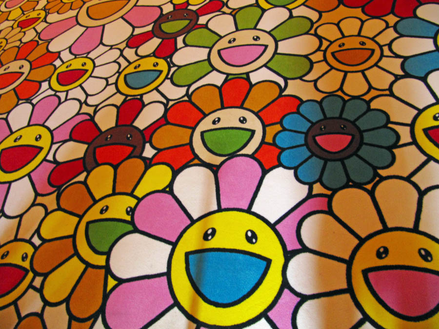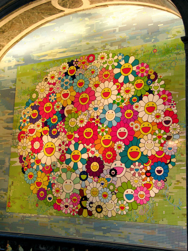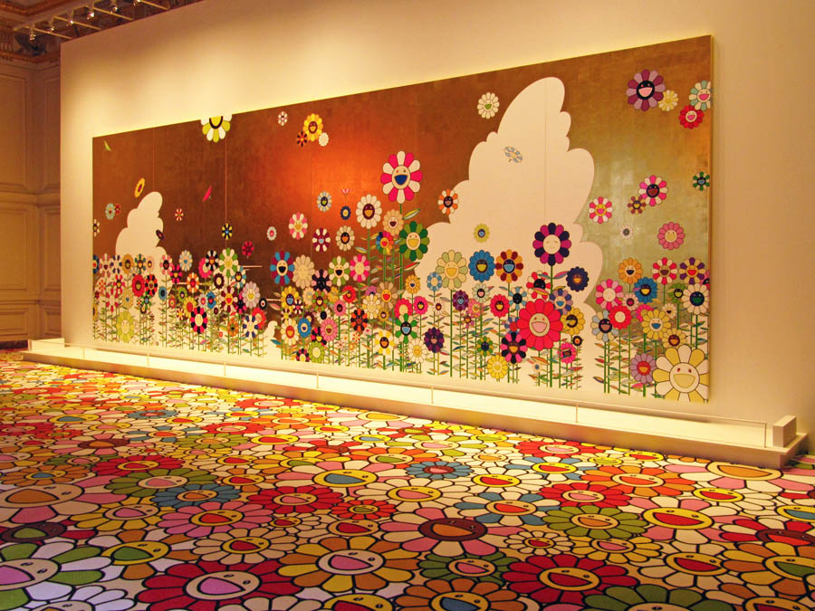 Room with a view. Murakami's Kawaii - Vacances Summer Vacation in the Kingdom of the Golden was a canvas situated in The King's Guards Room. Also in there was a rather colourful matching carpet (which still had that peculiar 'new carpet smell') and flower lamps. Outside the room was another canvas, mounted on a wall by the Loggia of the Queen's staircase. This ends the tour of the interior.