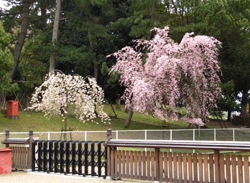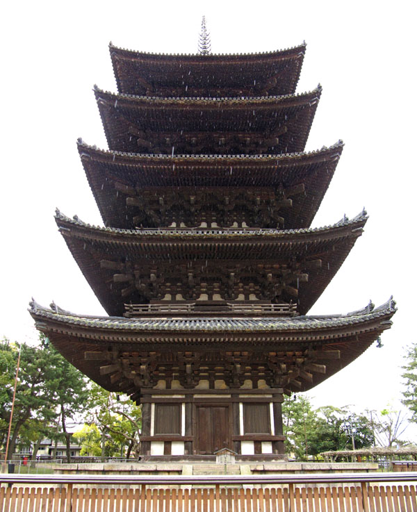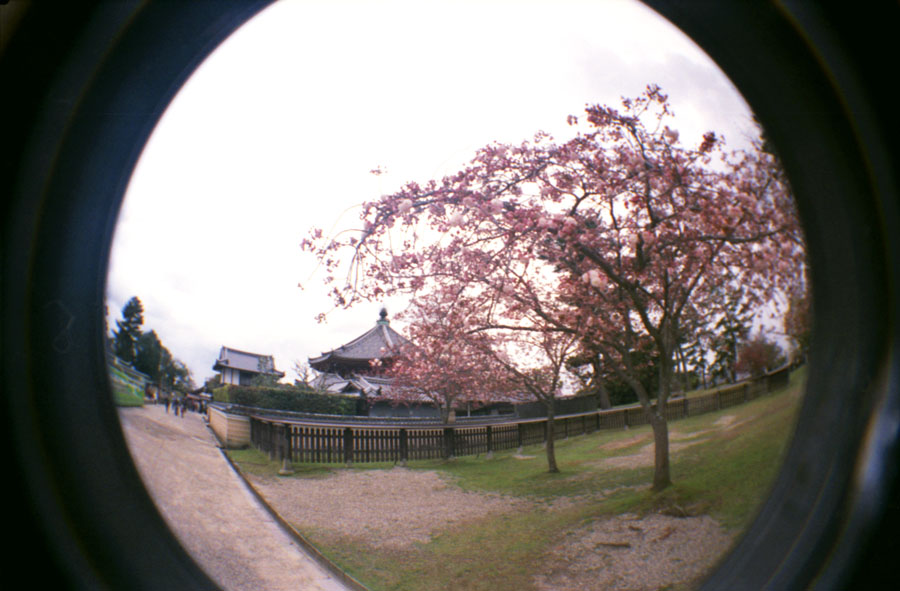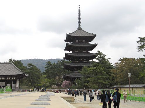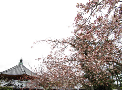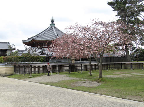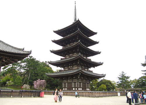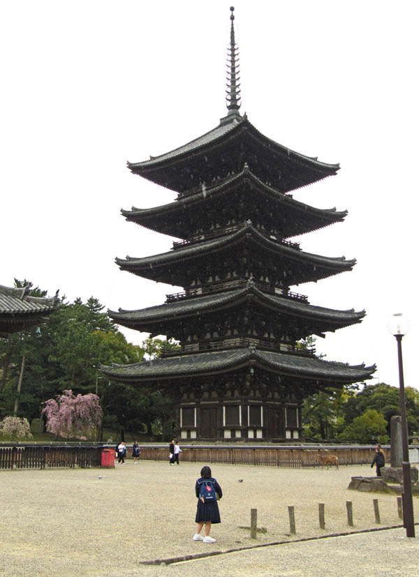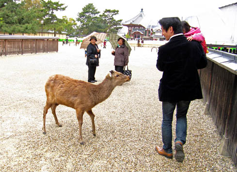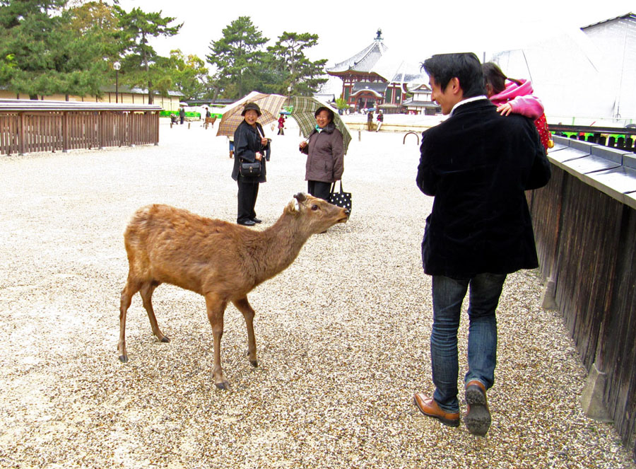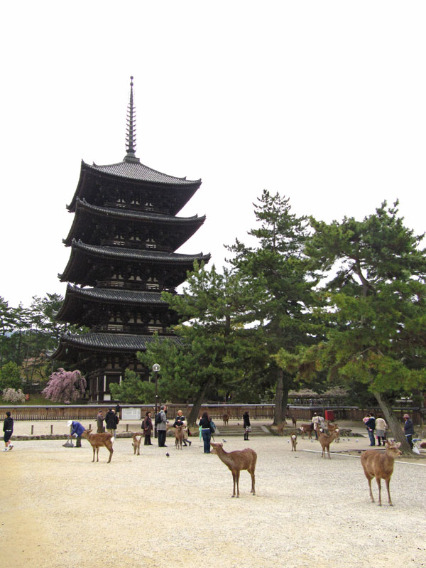 Rain, deer. In Nara. Oh deer, there I go again. Ahem, the pagoda... spring blossom, and rain. What a mixture.
