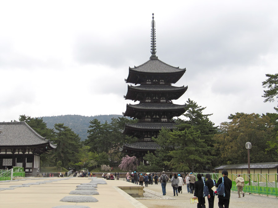Now then... in 710 AD the capital city of Heijo ('citadel of peace') was established as the capital of Japan. This idea was based on China's imperial city, and today Heijo is known as Nara. Below are pictures of the area surrounding the Kofuku-ji temple, and of the enormous five-storey pagoda. Nara is also littered with deer, who, to be honest, are driven only by the desire to eat. I had never encountered deer this close before, and I never realised how dumb they really are. Dumber than cows. And just as stinky.