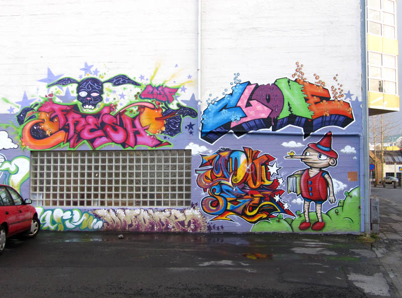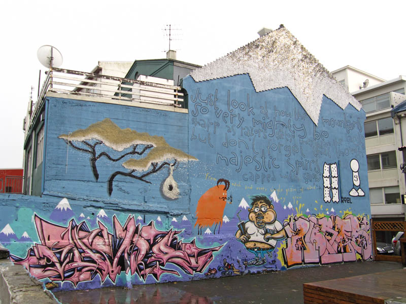 familiar, poetic piece has been bastardized somewhat, but that's what happens in the temporary world of street art. There's always some other fucker who comes along and shits all over it. The rest of the pieces are all situated in various parts of central Reykjavik.
