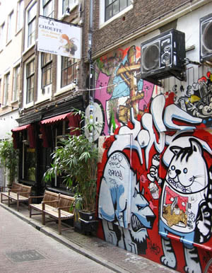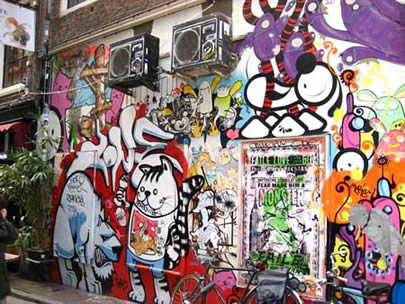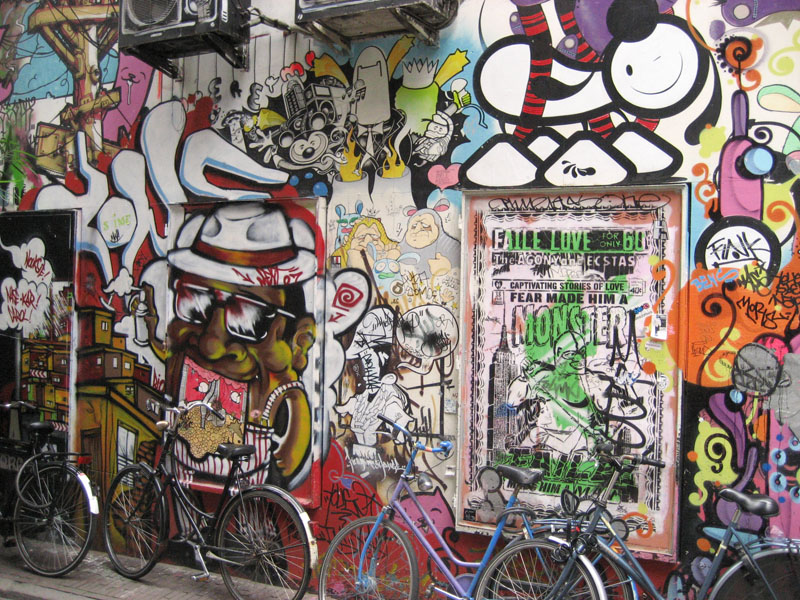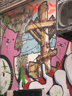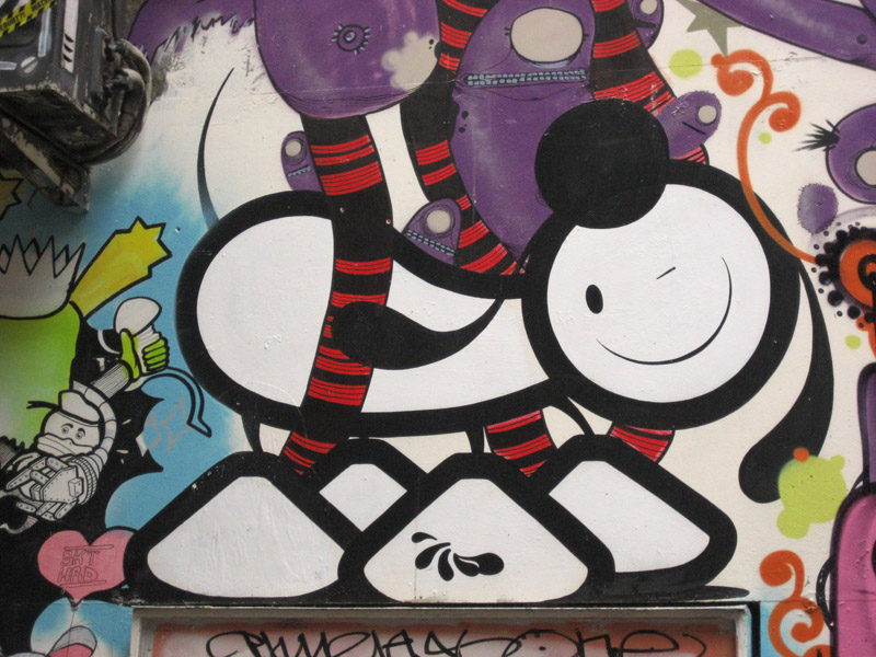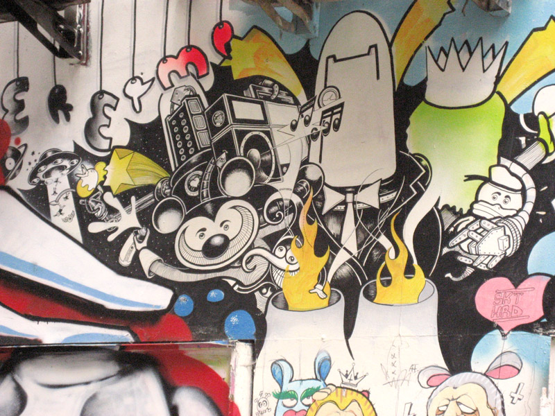 Pictures from 2007. The London Police did a piece here, which was constantly painted over by other 'artists' (read: punks). Eventually the whole wall was painted grey,