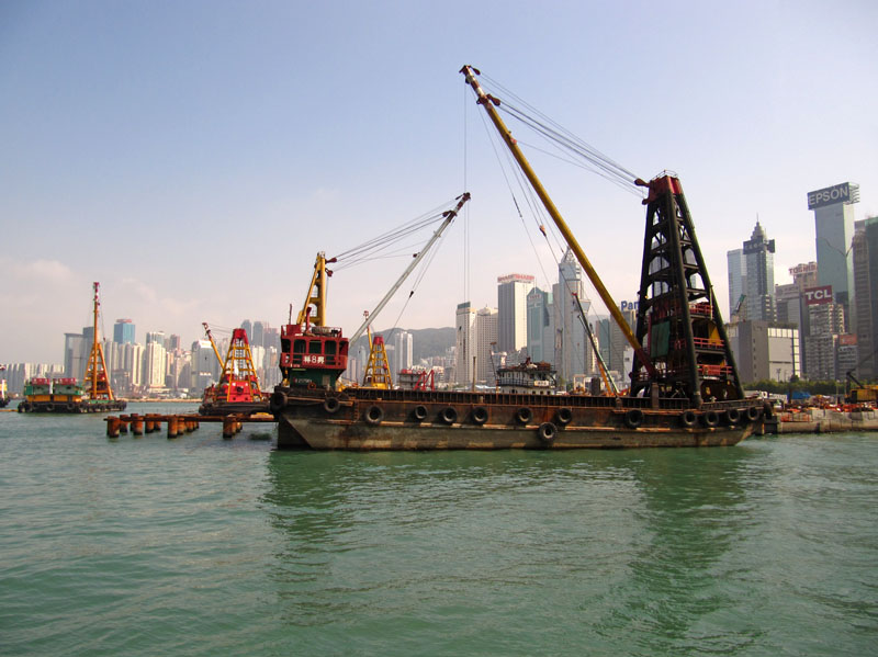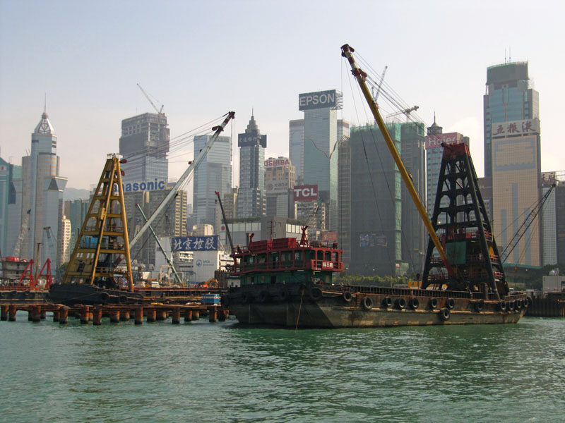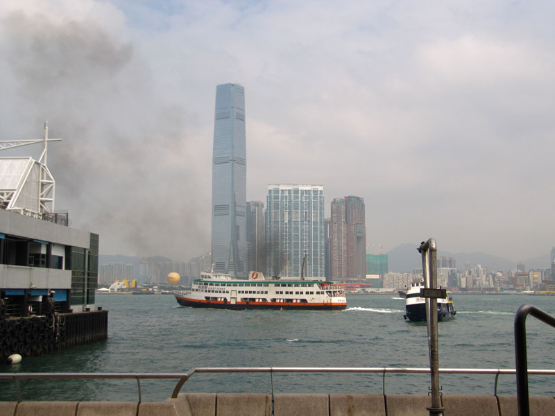 So, is time to travel across the water to HK island. Pictures here start from Causeway Bay and surrounding area, slowly making it to Times Square, which is on the next page. I must admit I didn't spend many days trawling through the streets of the island, so what you see is just a general point of view. Needless to say it's loud, smoggy, and smells of dirty bottoms. Looking at the fumes from the ferry BELOW RIGHT it's no surprise! Pew. Still, I prefer the ferry crossing rather than the jam-packed MTR line. That way I get to listen to the Lalo Schifrin's superb soundtrack to Enter The Dragon whilst crossing the river, which made me a very happy chappy indeed!