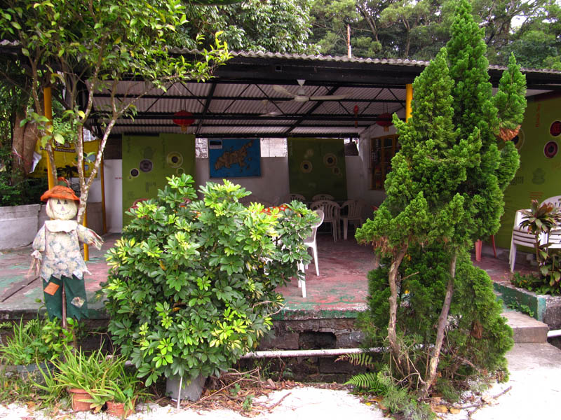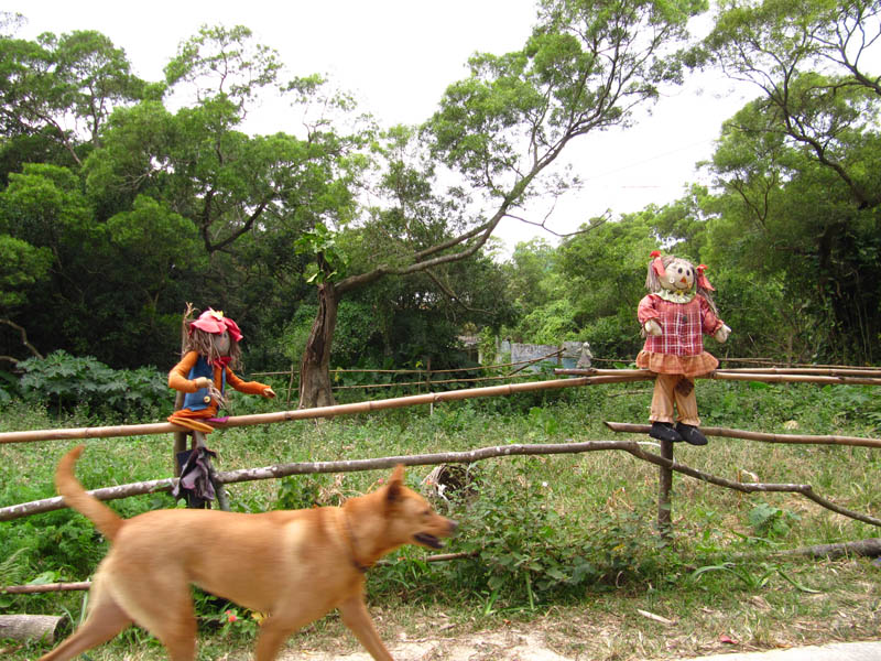 Lantau Tea Gardens is a run down, creepy little area just left of the Big Buddha. Perhaps I've seen too many dodgy horror movies (yes), but with all the stray dogs (I mean DOZENS OF 'EM), weird dolls attached to broken fences and run down buildings, and distinct lack of living humans (the tea house was actually closed when I was there), I felt like a chainsaw-weilding maniac was about to jump out of one the abandoned buildings at any moment... I mean this place was CREEPY. I stayed there for a while, no murdering lunatics leapt from the shadows, but I do believe that these are the best pictures from the whole trip. Eerie. So, let's call this "The Haunted Tea House By The Big Buddha By The Morgue Of The Chinese Living Dead". I thank you-ah.