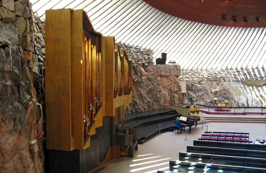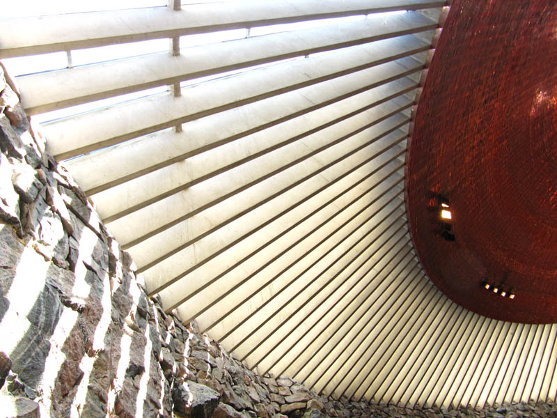 Temppeliaukio Church in Helsinki was designed by architects Timo and Tuomo Suomalainen.The church itself is actually blasted into bedrock, which is quite unique indeed! It was built in 1968/69, which you can tell because of the décor. The inside is circular and benefits from natural light through the circular glass which surrounds the copper ceiling. What a beautiful place this is! There was a young lady playing the piano whilst I was there, and let me tell you that the acoustics inside this church are amazing! The church is actually renouned for its concerts and has the local nickname of (wait for it) THE CHURCH OF ROCK! Where's Jack Black when you need him?