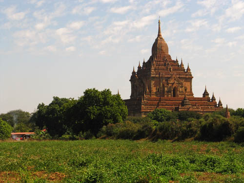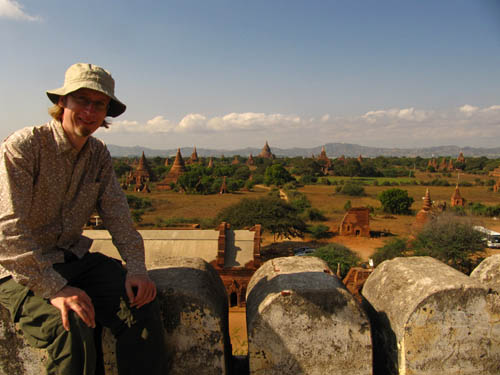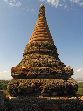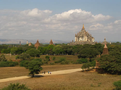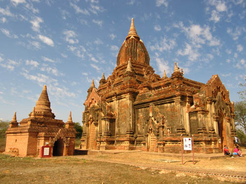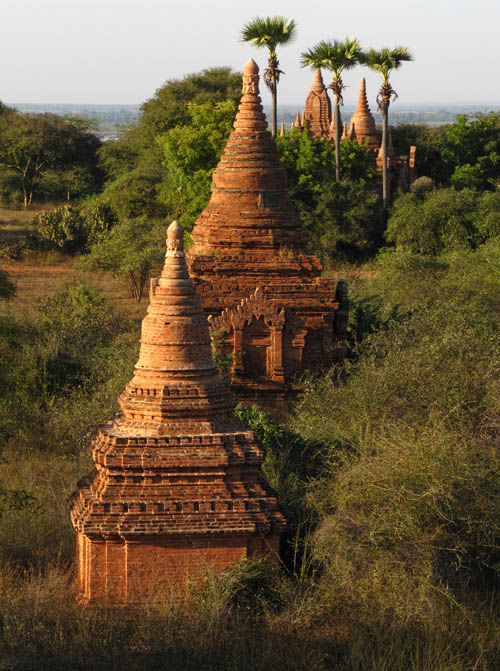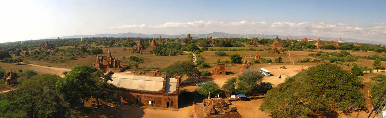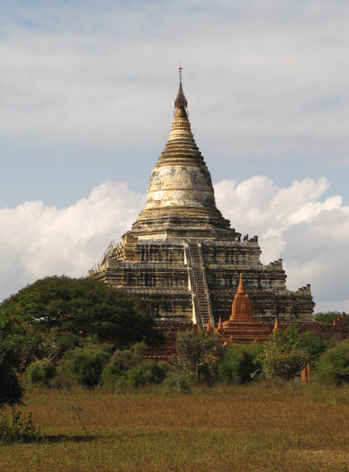 BELOW: Views from and around the 'sunset pagoda' Shwe San Daw. A great many tourists flock here shortly before sunrise and sunset. It's already getting too crowded here, and I don't know how the archeologists aim to quell the crowds. That said, there is an incredible view of Bagan from here though. The large, elongated building with the pale roof contains an enormous reclining Buddha (see further below).