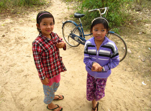ABOVE: A couple of pictures with my faithful steed 'Silver'. 'Silver' is (well, was) the name of the bike I rented for the week, and, by George, I used that bike over all kinds of terrain, sniffing out lots of obscurities all over the Bagan area. That bike was tough as old boots! As I peddled furiously around Bagan in 32 degree heat, I'd always stumble across cheeky girls. Yes, and these two were especially cheeky! Apparently, they wanted free money ! Free! Money! For free! I mean, what a concept! I hope that sort of thing doesn't catch on in Europe, boy howdy!
