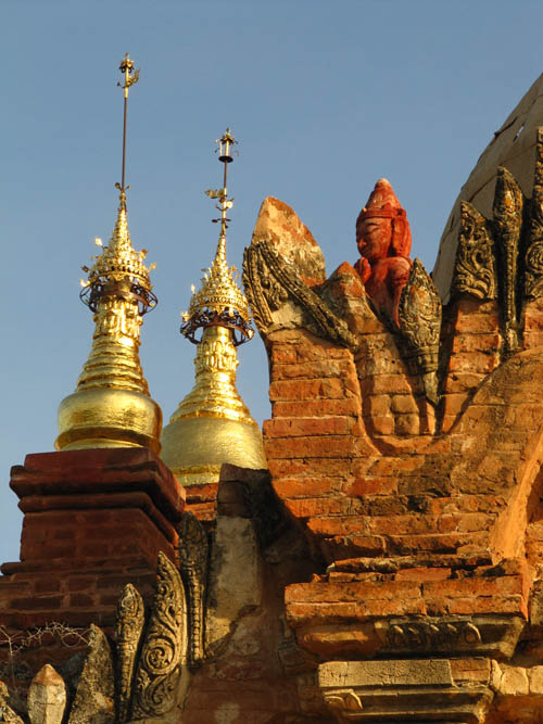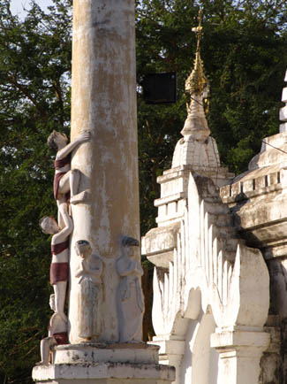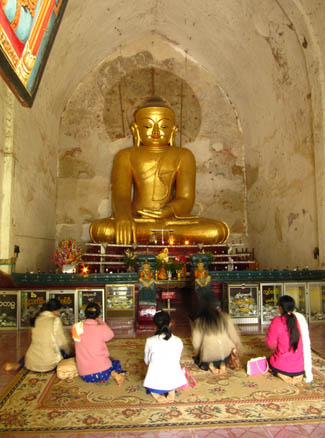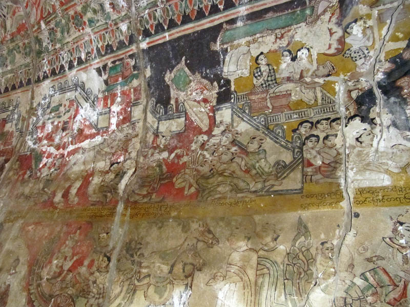 BELOW: Bling Bling! Wow! The one major temple in the Nyaung-U area is a massive, sprawling epic! The area surrounding the pagoda is very spacious indeed, and can be entered via four large walkways/tunnels. The centre point is this enormous site is the Shwe-zi-gon pagoda. The stupa is covered in gold leaf and dates back to the 11th Century. Shwe-zi-gon is one the major Buddhist sites in all Myanmar. I visited several times in order to really see all of the surrounding area. There are some staggering temples, frescos and stupas all around this site! Incredible! Here's some random pictures...
