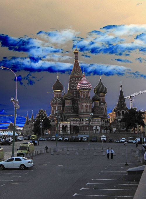 June 12th was Russian Independence Day. This meant that most of the Kremlin area was closed off to tourists in the days leading up to the 12th. Not such a big deal really... On the day itself, there was a huge (and diabolical) concert for the masses in Red Square, with dancing, leaping, singing and lots of orchestrated flag-waving. The Red Square/Kremlin area was completely closed off and under extremely tight security. All streets and bridges surrounding the Kremlin were closed off and heavily guarded. In fact, the streets leading up to the streetseven close to the Kremlin were also closed off. Everything was closed. Only a clearly selected crowd were let in to Red Square to enjoy the entertainment.