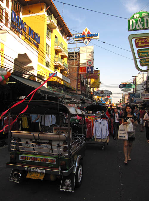 ABOVE AND LEFT: The now legendary back-packers area that is Khao San road. Lots and lots of cheap-ass fake goods on sale here. Fake fashion, electronics, even identification. Also, lots of places to eat and sleep, some good, some shite. Tuk Tuk!
