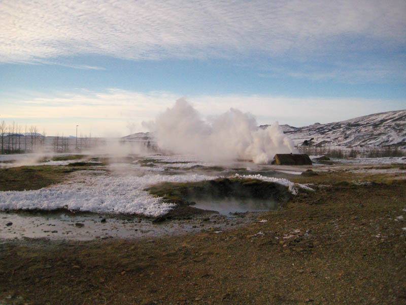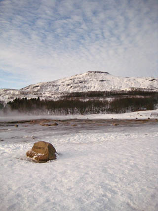 steaming mass of water there died out many years ago. The name, however, stuck. Follow the bits of steam in the pictures, and that's the geysir. But don't get too close. It runs hot, hot, hot!