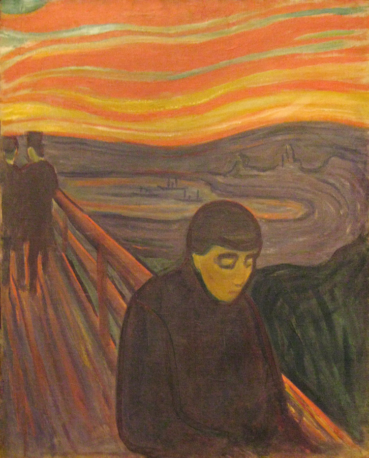 The Edvard Munch paintings are: Fortvilelse (aka 'Despair'),