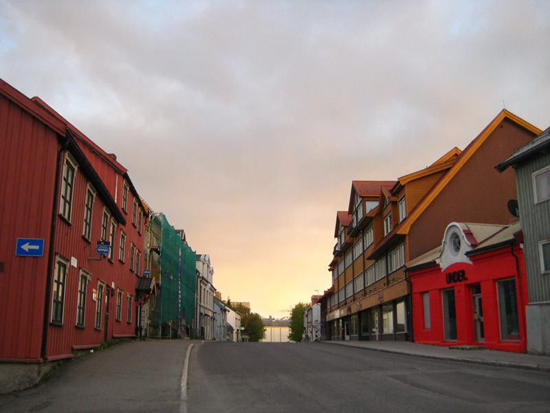 The 2 Pictures in the middle are of the Midnight Sun, and indeed, a view of Tromsø itself! It's very difficult to describe the light... these pictures do look like a normal sunset. But wait! If you look at the picture (Bottom Left) of the Ishavskatedralen (Arctic Catherdal), you'll notice the orange light of the sunset, but with the blue sky behind it. This picture was taken just before midnight. The sun set exactly where you see it, and stayed there unti sunrise. Kooky. Finally, the picture next to it (Street View) again shows the strange light. At this point it was after midnight, and the sky began to cloud over. I never saw the midnight sun again after that day. I think I just got lucky.